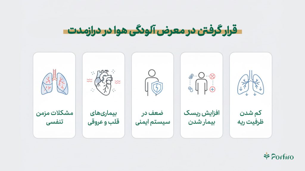 تحقیقات در مورد مشکلات سلامتی طولانیمدت که آلودگی هوا میتواند ایجاد کند، همچنان ادامه دارد. آلودگی هوا در نتایج تحقیقات علمی عمدتا با مشکلات جدی سلامتی، پیامدهای نامطلوب زایمان و حتی مرگ زودرس در ارتباط بوده است. در ادامه برخی از این موارد توضیح داده شده است: