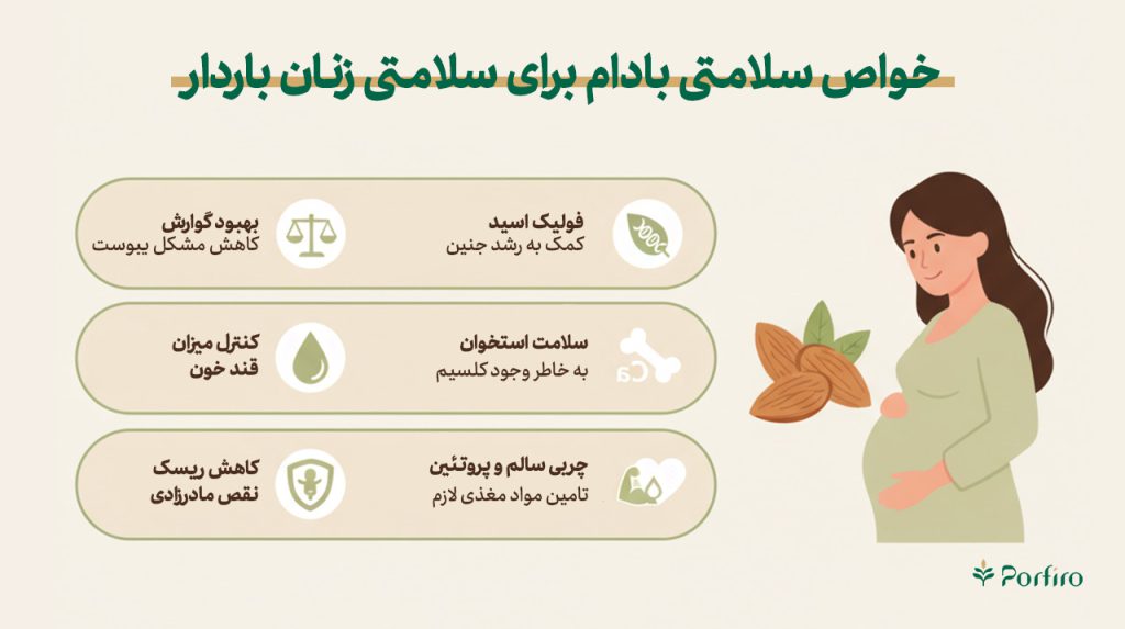 «مزایای بادام برای زنان باردار و مصرف بادام خیسخورده»، وبلاگ پرفیرو، ۲۰ مهر ۱۴۰۴