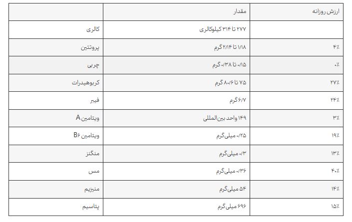 بهطور متوسط، یک وعدۀ ۱۰۰ گرمی خرما حاوی موارد زیر است: