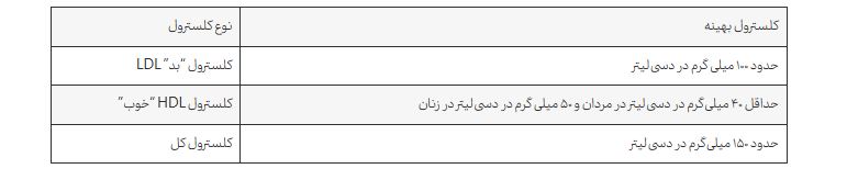 کلسترول بالا یک عامل خطر مهم برای بیماری عروق کرونر قلب و عامل حملۀ قلبی است. تجمع کلسترول بخشی از فرآیندی است که شریانها را باریک کرده و تصلب شرایین نامیده میشود. در آترواسکلروز، پلاکها تشکیل شده و باعث محدود شدن جریان خون میشوند. به همین دلیل، پزشکان توصیه میکنند که سطح کلسترول کل و LDLرا در محدودۀ خاصی نگه دارید. جدول زیر سطوح بهینۀ کلسترول خون را طبق منبع معتبر مرکز کنترل و پیشگیری از بیماری (CDC) نشان میدهد.