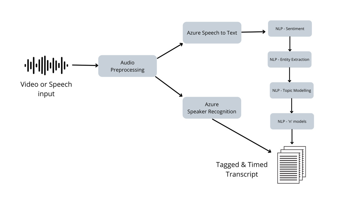 شکل زیر معماری گفتار به متن Vitra.ai، ترکیبی از خدمات شناختی Azure و مدل های سفارشی را نشان میدهد.