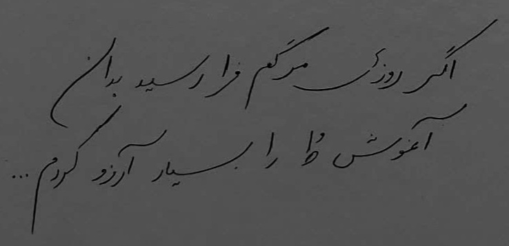 نمیدونم، فقط گیر هرکسی اومد امیدوارم خیلی مواظبش باشه، اون قلب مملو از احساس و شیشه ایه، عاشق شده و سرشار از عشق خداست. قول بده که هیچ رذیلت و بدی و چرک توش راه نده، فقط همین.