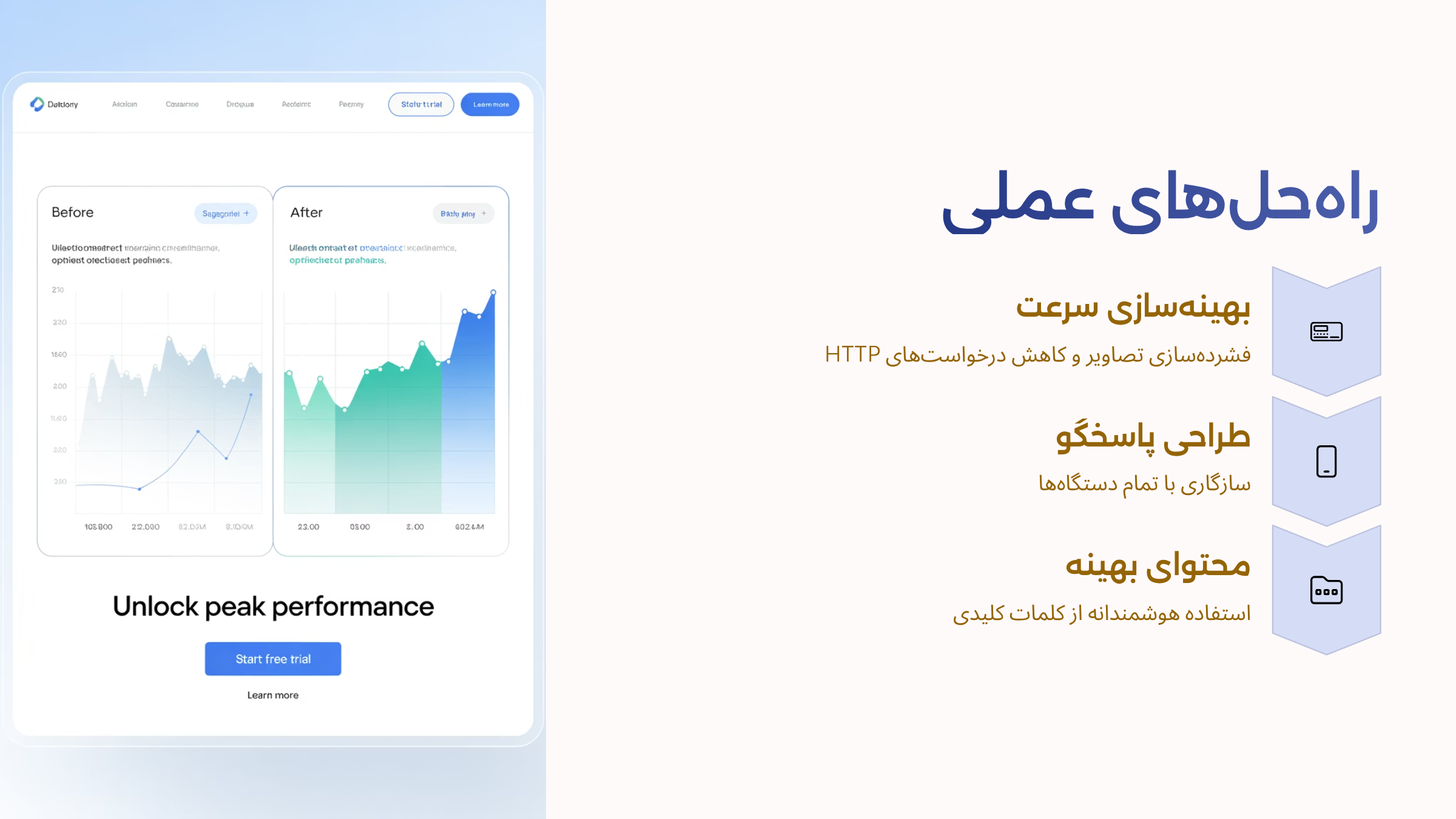 بهینهسازی سرعت بارگذاری سایت و سازگاری با موبایل.