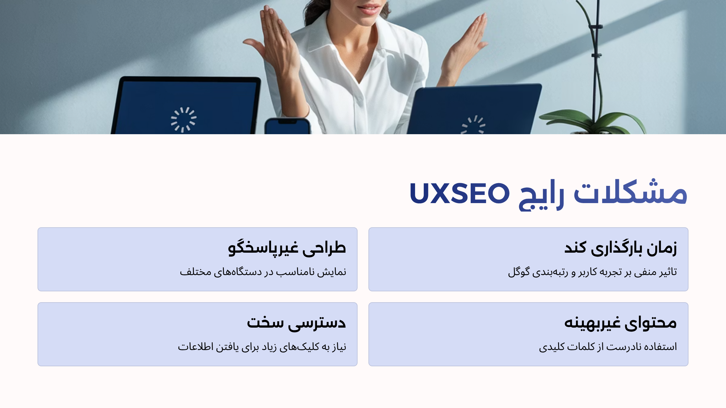 تجربه کاربری به تمامی جنبههای تعامل کاربر با سایت شما اشاره دارد. این شامل طراحی، سرعت بارگذاری، دسترسی به اطلاعات و نحوه تعامل با محتوا میشود. در این بخش، به تحلیل مشکلات UX در سایت مورد نظر خواهیم پرداخت.