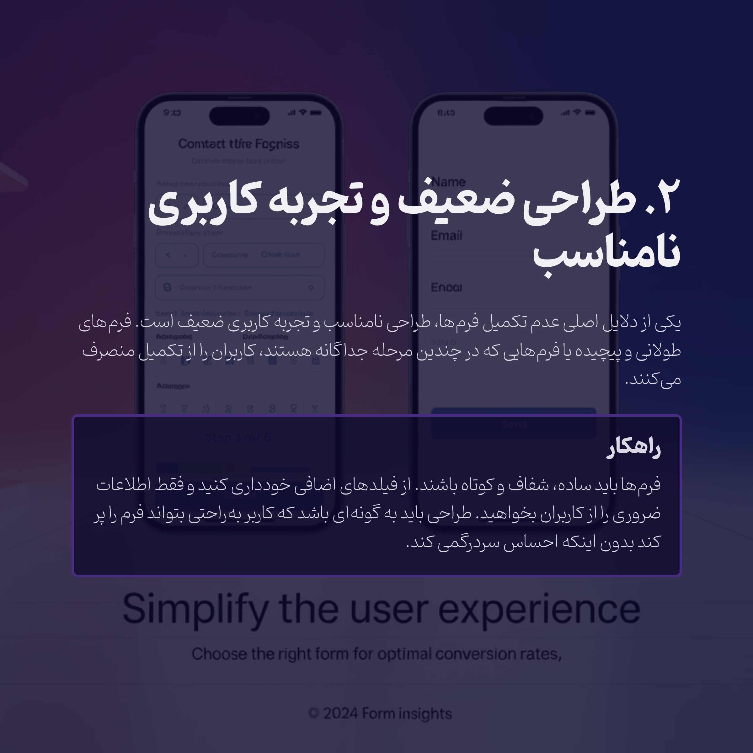 چالش شما چیست؟ تجربه کاربری شما ممکن است مشکل داشته باشد، و به همین دلیل، میتوانید به کانال تلگرام UX_SEO برای دریافت نکات دقیقتر در زمینه بهبود تجربه کاربری و طراحی فرمهای ساده و مؤثر بپیوندید.