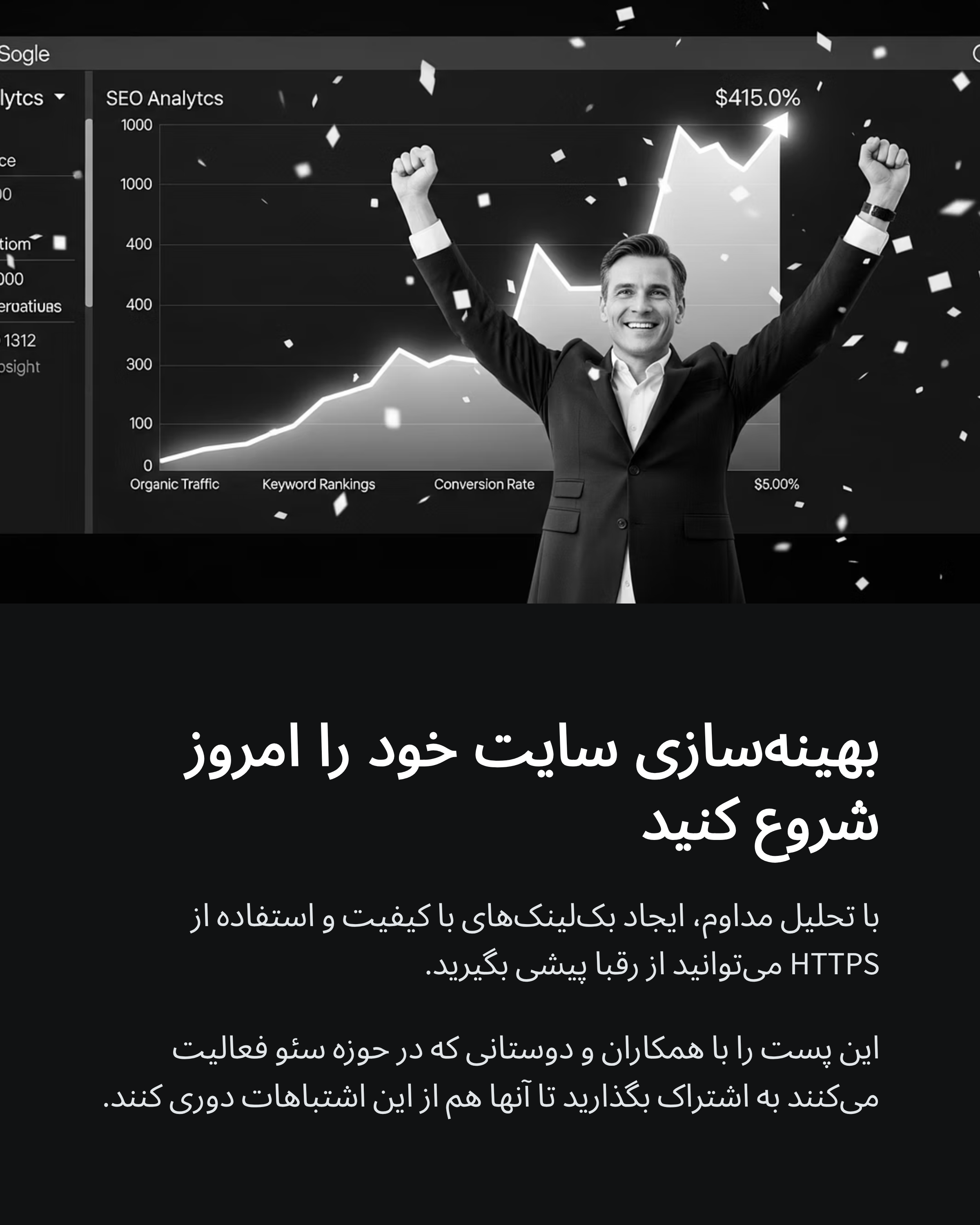 از ابزارهایی مانند Google Analytics و Google Search Console برای تحلیل عملکرد سایت خود استفاده کنید.