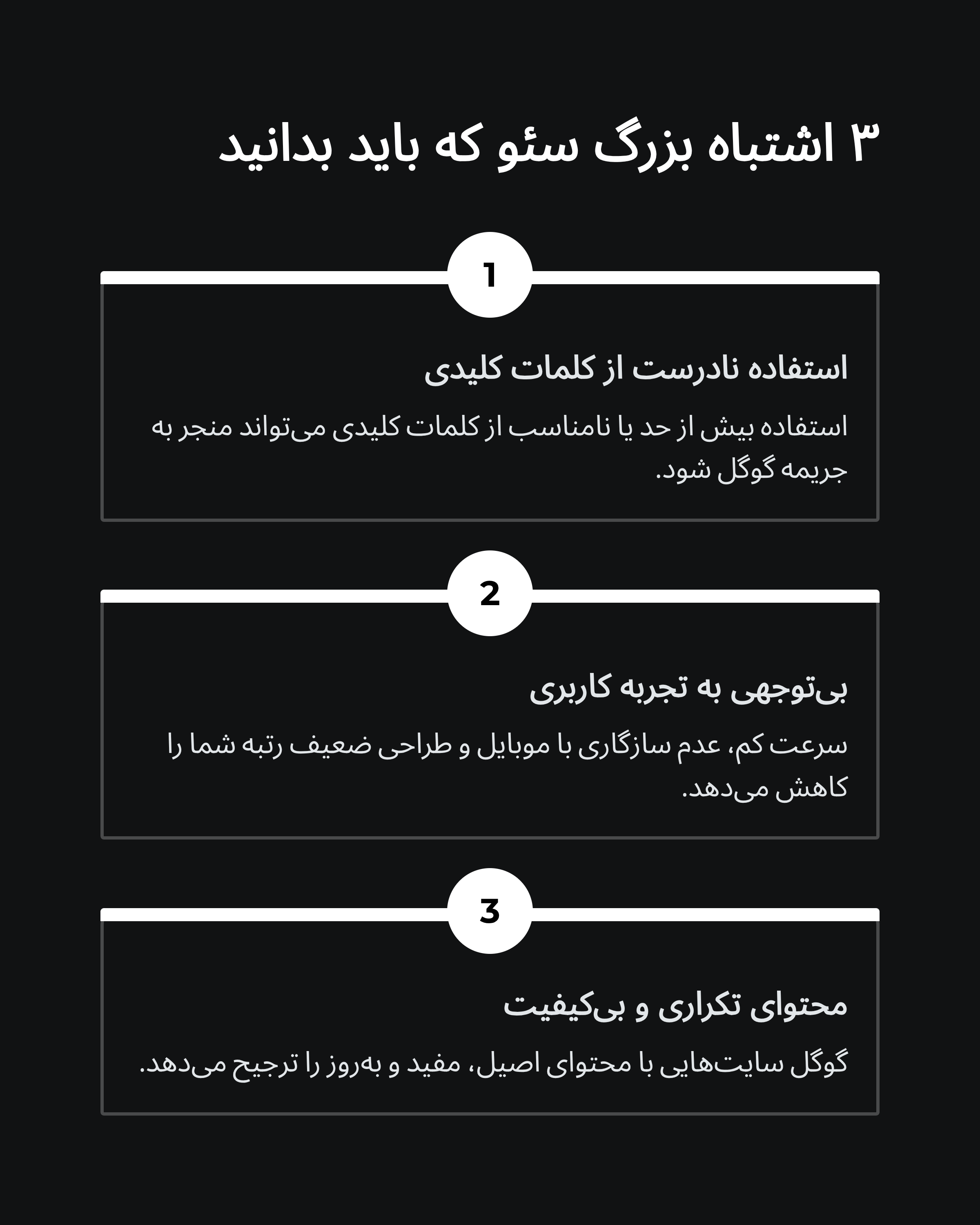 از استفاده زیاد کلمات کلیدی در یک صفحه خودداری کنید و متن را طبیعی و مفهومی نگه دارید.