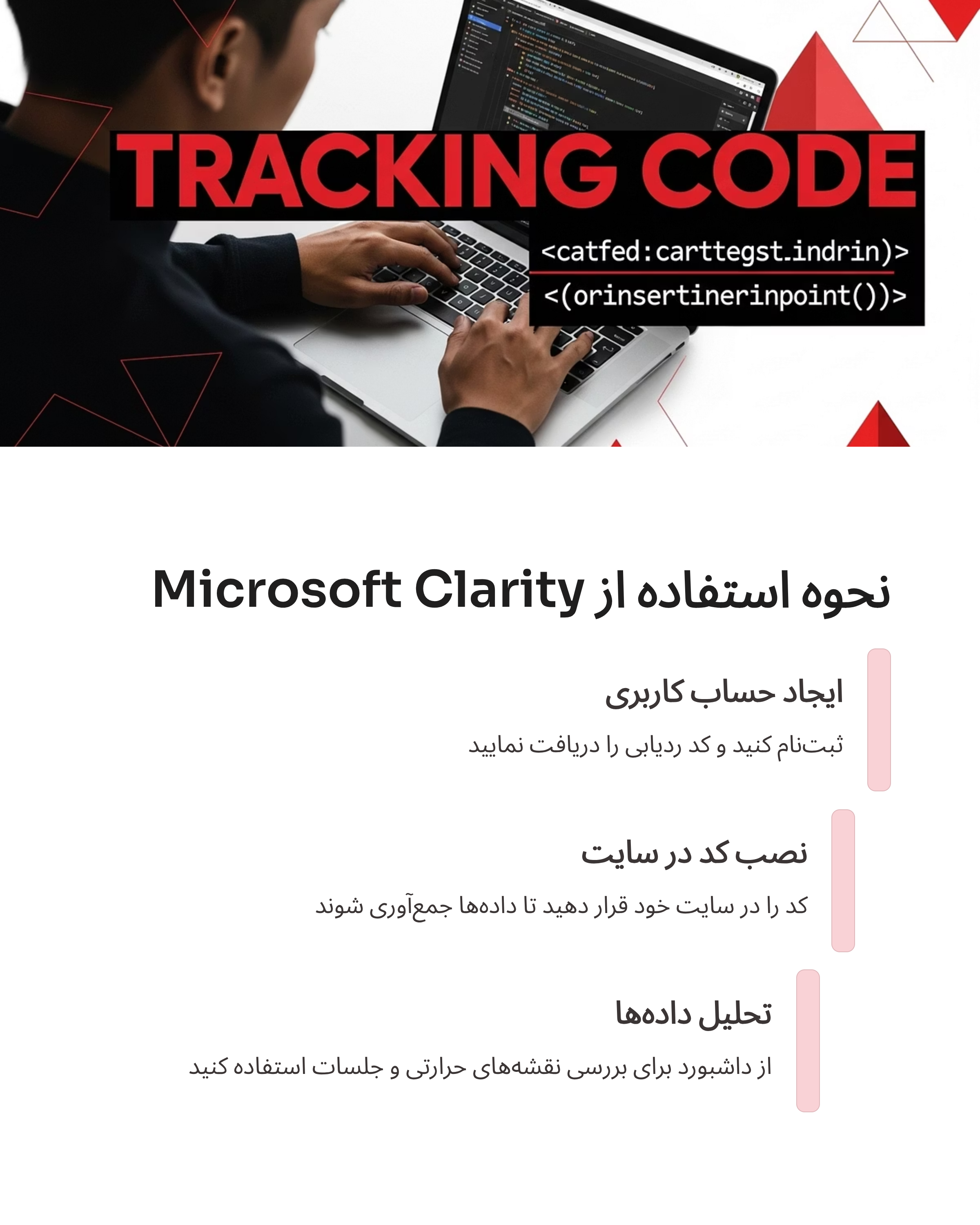 برای شروع استفاده از Microsoft Clarity، ابتدا باید یک حساب کاربری ایجاد کنید. پس از ثبتنام، کد ردیابی به شما داده میشود که باید آن را در سایت خود قرار دهید. این کد به شما این امکان را میدهد که دادههای دقیق از رفتار کاربران را جمعآوری کنید.