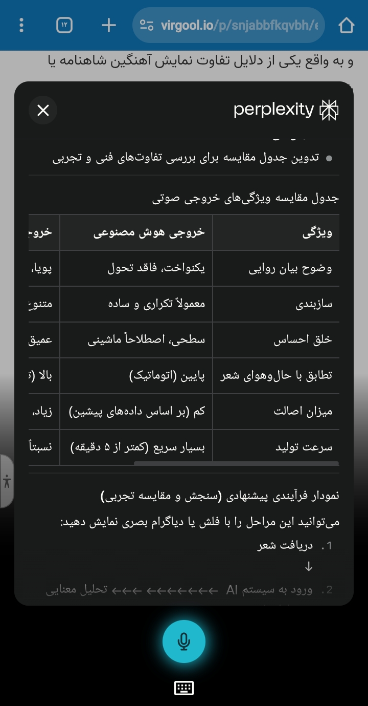 در فصل سیزده(( #کتاب_نغمه_نگاره_شاهنامه))، هدف ارائه قضاوت نیست، بلکه نمایش دو نمونه موسیقی برای بررسی شنوندگان است تا خودشان تفاوتها را تجربه کنند. مثلاً بخش دوازدهم از اشعار پادشاهی بهرام (شعر ۹۹۸) به هر دو روش امتحان شده است:نمونه موسیقی با هوش مصنوعیکل متن شعر به سیستم هوش مصنوعی داده میشود و خروجی موسیقی مستقیماً و بدون دخالت جزئیات انسانی تولید خواهد شد.همه چیز از جمله تنظیم، انتخاب صداها، ریتم و حتی جنسیت و طرز اجرای خواننده، توسط الگوریتم و مدل انتخاب میشود و کاربر فقط نتیجه را تحویل میگیرد.
