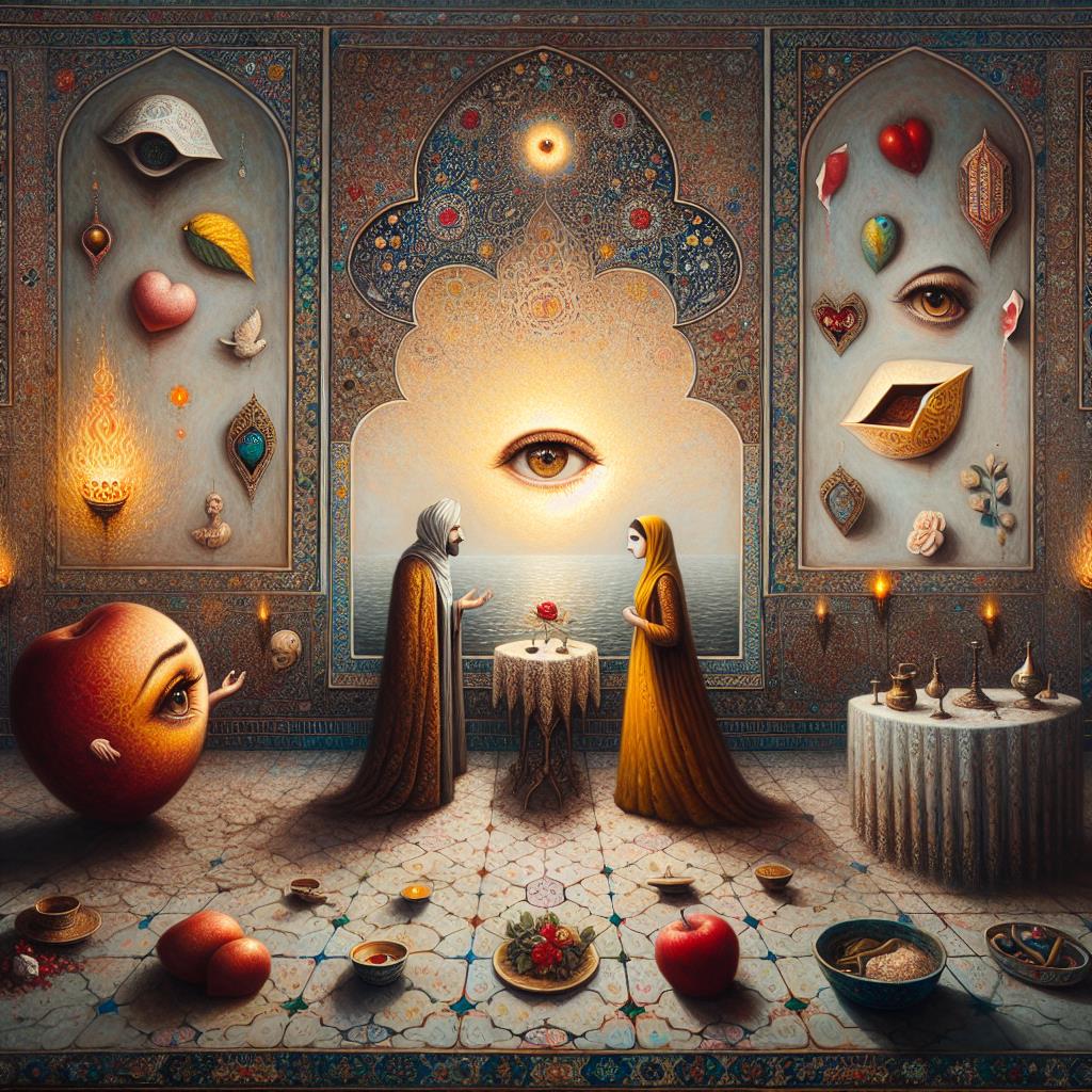 پیشنهاد موسیقایی:ساز سهتار یا سنتور با ملودی ساده و تأملبرانگیز، چون بازتاب خرد و جستجوی درون است.ریتم آزاد و کند، بیضربآهنگ تثبیتشده تا فضای تفکر و مراقبه القا شود.اجرای تکخوان (صدای مردانه آرام) مناسبتر است، زیرا آغاز، فضایی گفتگویی و فاخر دارد.