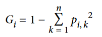 در این فرمول، p نشون دهنده نسبت نمونههای کلاس k در میان نمونههای گرهی i ام هست.