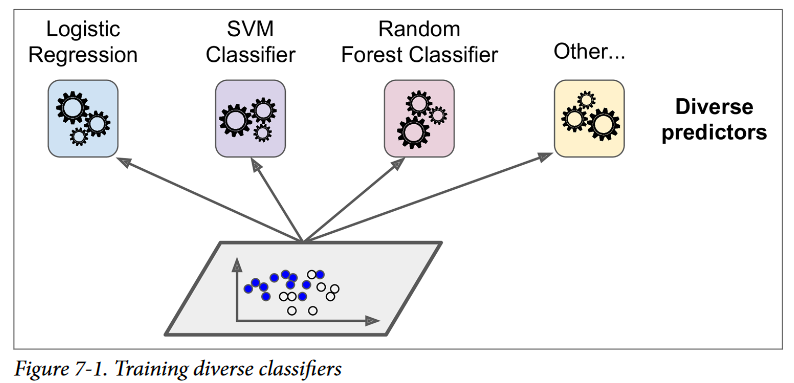 مدلهای Ensemble در مواقعی بهترین عملکرد رو دارن که Predictorها تا جایی که امکان داره از هم مستقل باشند. یک راه برای رسیدن به Classifierهای متفاوت از هم، این هست که اونها رو با الگوریتمهای متفاوت آموزش بدیم. این باعث میشه شانس انجام اشتباههای متفاوت بیشتر بشه و دقت مدل افزایش پیدا کنه.