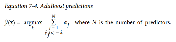 کتابخانه Scikit-Learn از ورژن چندکلاسی AdaBoost به نام SAMME استفاده میکنه (Stagewise Additive Modeling using a Multiclass Exponential loss function ) وقتی فقط دوتا کلاس داریم SAMME برابر با AdaBoost هست.اگر Predictorها بتونن احتمال هر کلاس رو محاسبه کنن (یعنی تابع predict_proba داشته باشن) Scikit-Learn میتونه از یک نوع SAMME به نام SAMME.R استفاده کنه (R مخفف Real هست) این نوع بهجای تکیه بر پیشبینیها، برپایهی احتمالات هست و عموما بهتر عمل میکنه.