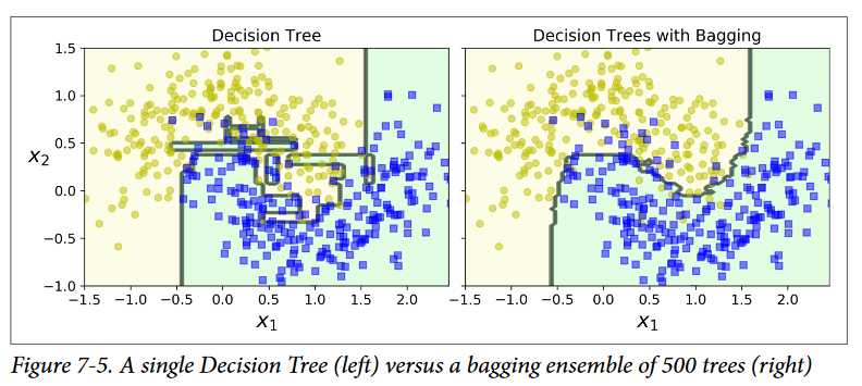 bag_clf.fit(X_train, y_train) y_pred = bag_clf.predict(X_test)