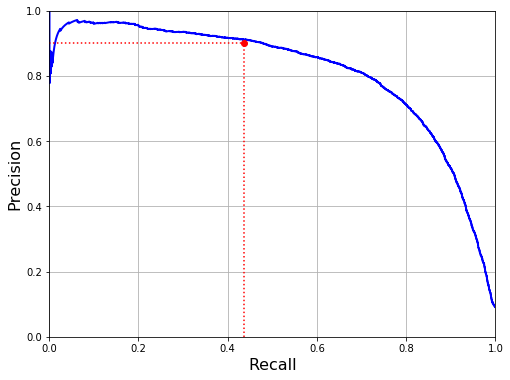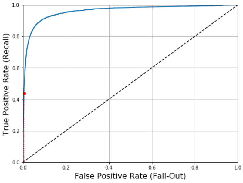 حالا تونستیم یک Classifier با Precision 90% درست کنیم. همونطور که دیدید ساخت همچین چیزی آسون بود: فقط مقدار آستانه رو باید تعیین کنید. اما خب در نظر بگیرید که مدلی که مقدار Precision بالا ولی Recall خیلی پایینی داره، خیلی کاربردی نیست!
