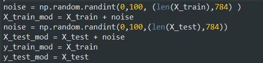 بیاید به تصاویر دیتاست MNIST نویز اضافه کنیم. این کار رو با استفاده از تابع randint در کتابخانه NumPy انجام میدیم: