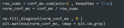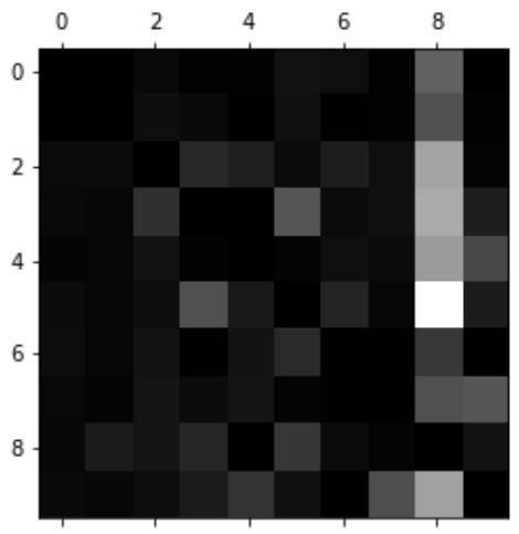 حالا به راحتی میتونیم خطا هایی رو که مدل انجام میده ببینیم. یادتون باشه ردیف ها نشون دهنده دسته های واقعی و ستون ها نشون دهنده دسته هایی که حدس زده شدن، هست. ستون 8 خیلی روشن هست یعنی خیلی از اعداد اشتباهاً بعنوان 8 شناخته میشن. وضعیت ردیف 8 زیاد بد نیست و نشون میده که 8 ها واقعا 8 شناسایی میشن. همونطور که میبینید Confusion Matrix لزوما متقارن نیست. مدل 3 ها و 5 ها رو هم با هم قاطی میکنن (در هر دو جهت)