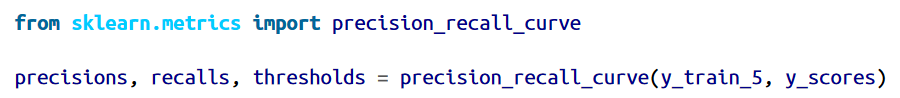 چطور میفهمیم که از چه آستانه ای باید استفاده کنیم؟ اول از تابع cross_val_predict استفاده میکنیم تا امتیاز همه نمونه های ترینینگ ست رو به دست بیاریم: