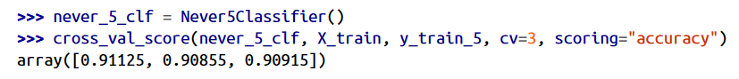 دقت بالای 93 درصد شاید اولش خوب به نظر بیاد ولی زیاد هیجان زده نشید. بیاید به یک Classifier نگاه کنیم که غیر 5 ها رو دسته بندی میکنه: