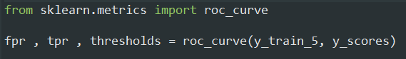 برای رسم منحنی ROC اول از تابع roc_curve استفاده میکنیم تا TPR و FPR رو برای آستانه های مختلف حساب کنه: