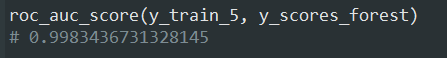 یک راه دیگه برای مقایسه Classifier ها محاسبه مساحت زیر منحنی (Area Under the Curve) یا AUC هست. یک مدل عالی ROC AUC برابر یک و یک مدل کاملا غلط ROC AUC نزدیک به 0.5 خواهد داشت. از Scikit-Learn برای محاسبه ROC AUC استفاده میکنیم: