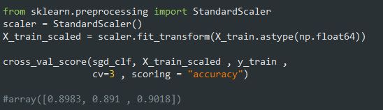 حالا بیاید یک Classifier انتخاب کنیم. برای شروع میتونیم از Stochastic Gradient Descent(SGD) استفاده کنیم. یکی از نکات مثبت این الگوریتم این هست که به راحتی میتونه با دیتاست های بزرگ کار کنه.