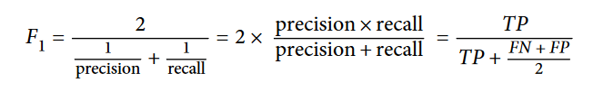 بیشتر اوقات این دو تا معیار رو با هم ترکیب میکنن تا معیاری به نام F1 Score ساخته بشه. این معیار درواقع میانگین هارمونیک Precision و Recall هست. تفاوت این میانگین با میانگین معمولی این هست که میانگین معمولی با همه مقادیر یکسان برخورد میکنه، درحالیکه میانگین هارمونیک وزن بیشتری به مقادیر کم میده. بخاطر همین Classifier موقعی F1 Score بالایی به دست میاره که هر دوی Precision و Recall مقادیر زیادی داشته باشن.