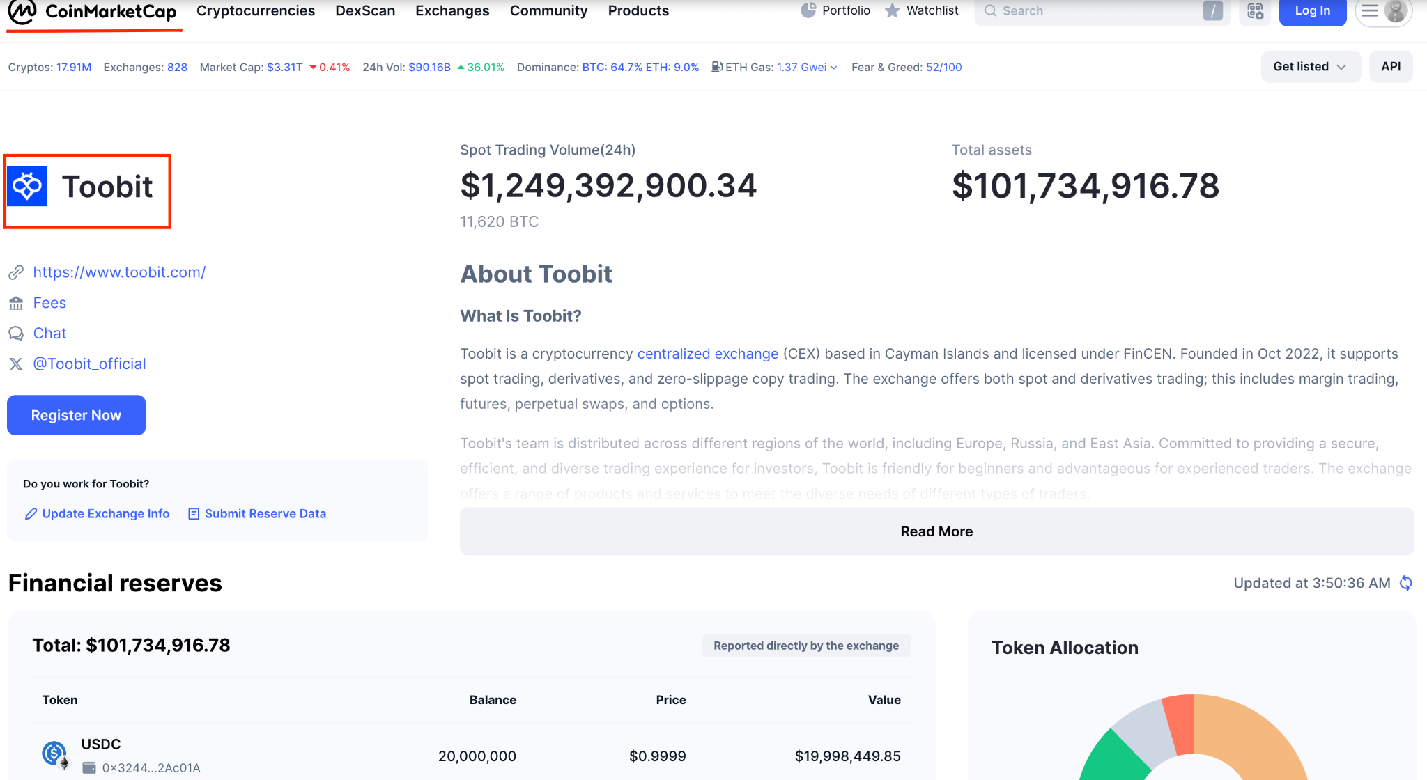 ● Toobit: این صرافی با ممیزیهای امنیتی معتبر، استفاده از ذخیره سرد و ارائه گزارش Proof of Reserves، استانداردهای جهانی شفافیت را رعایت میکند. رتبه ۲۰ در CoinMarketCap و عدم گزارش هک از زمان تأسیس، نشاندهنده تعهد این صرافی به امنیت است.