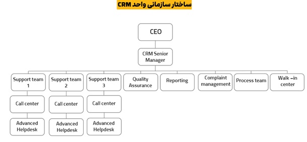 تصویر بالا، ساختار یک دپارتمان CRM در یک شرکت با اندازه متوسط را نشان میدهد.