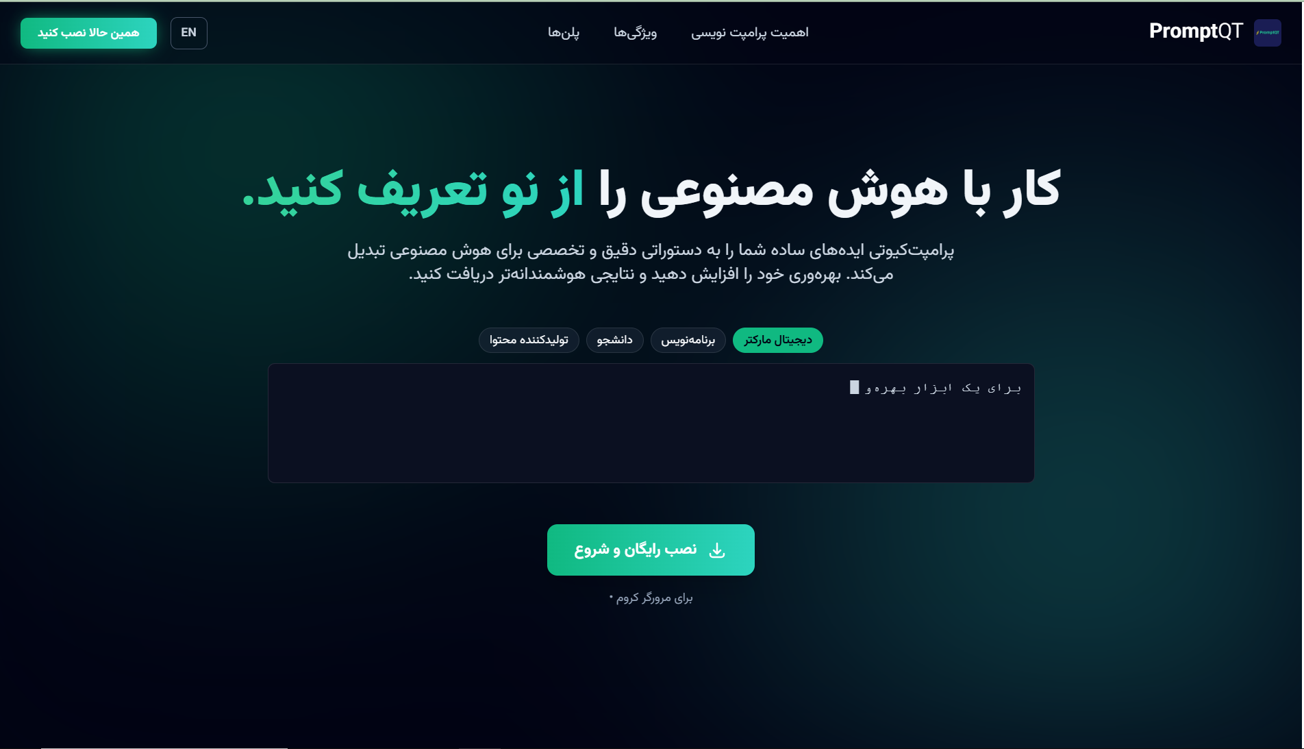 🗒افزونه هوشمند prompt QT با یه کلیک پرامپت های ساده شما را به پرامپت های حرفه ای و هدفمند تبدیل میکنه .