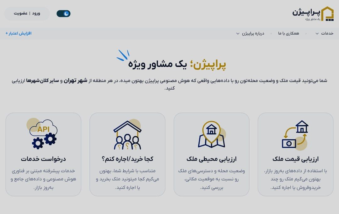 🔊 پراپیژن با استفاده از هوش مصنوعی و دادههای واقعی بازار، به شما کمک میکنه قیمت دقیق ملک و وضعیت محلهتون رو ارزیابی کنید در تهران و سایر کلانشهرها.