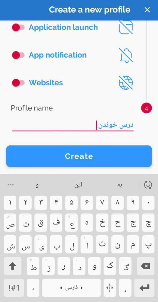 و در مرحله آخر باید یه اسم برای این محدود سازی انتخاب کنید، مثلا یه انگیزه مثل درس خوندن. در آخر create رو بزنید تا محدود سازی فعال بشه.