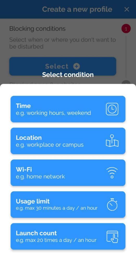 اینجا می تونید مشخص کنید تو چه زمانی(چه بازه یا بازه هایی از روز) یا حتی تو چه مکانی استفاده تون محدود باشهٍ و اینکه حداکثر چندبار در روز بتونید گوشیتون رو باز کنید و حداکثر چند ساعت از اون استفاده کنید. عملا چیزی که به درد ما می خوره همون اولی هست. یعنی اینکه تو چه بازه هایی استفاده رو محدود کنیم. پس بزنید رو Time .