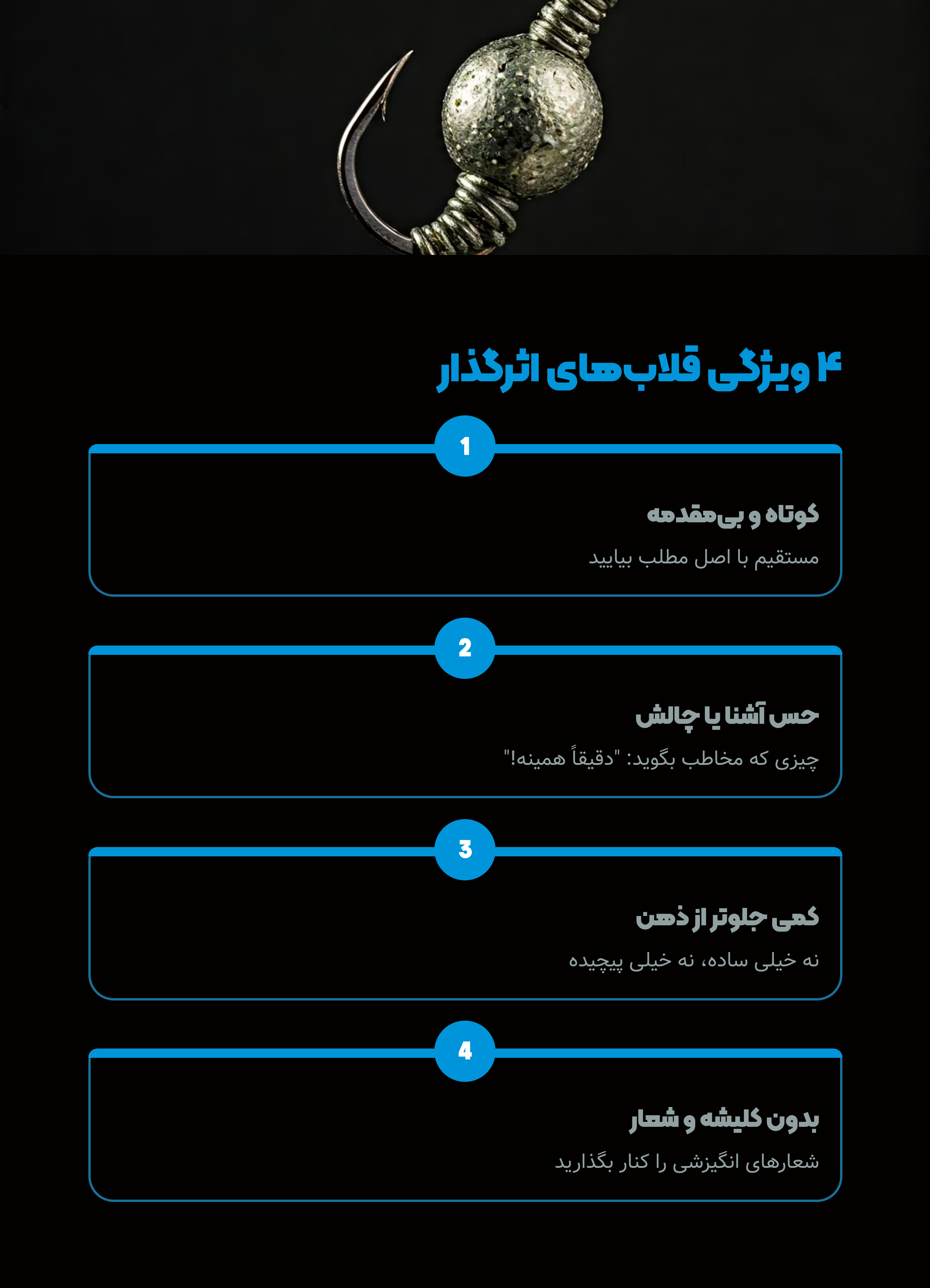 ۳. جملهای که یه نیمقدم جلوتر از ذهن مخاطب باشه