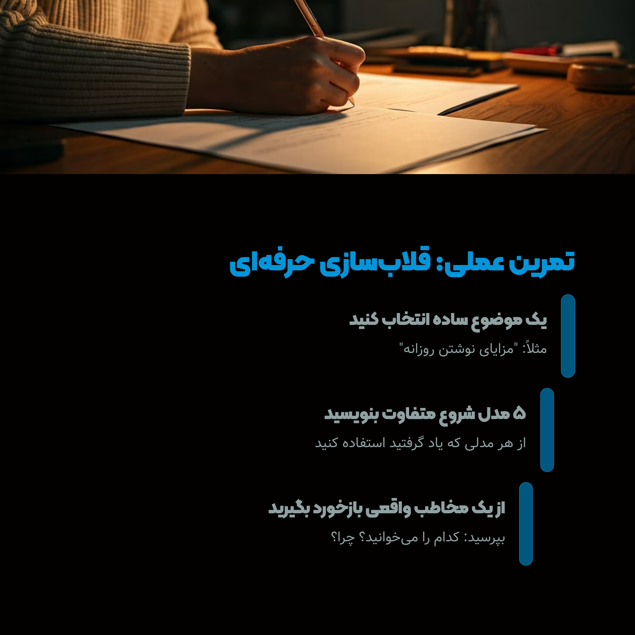 بعد یه مخاطب واقعی بپرس: کدوم رو میخونی؟ چرا؟