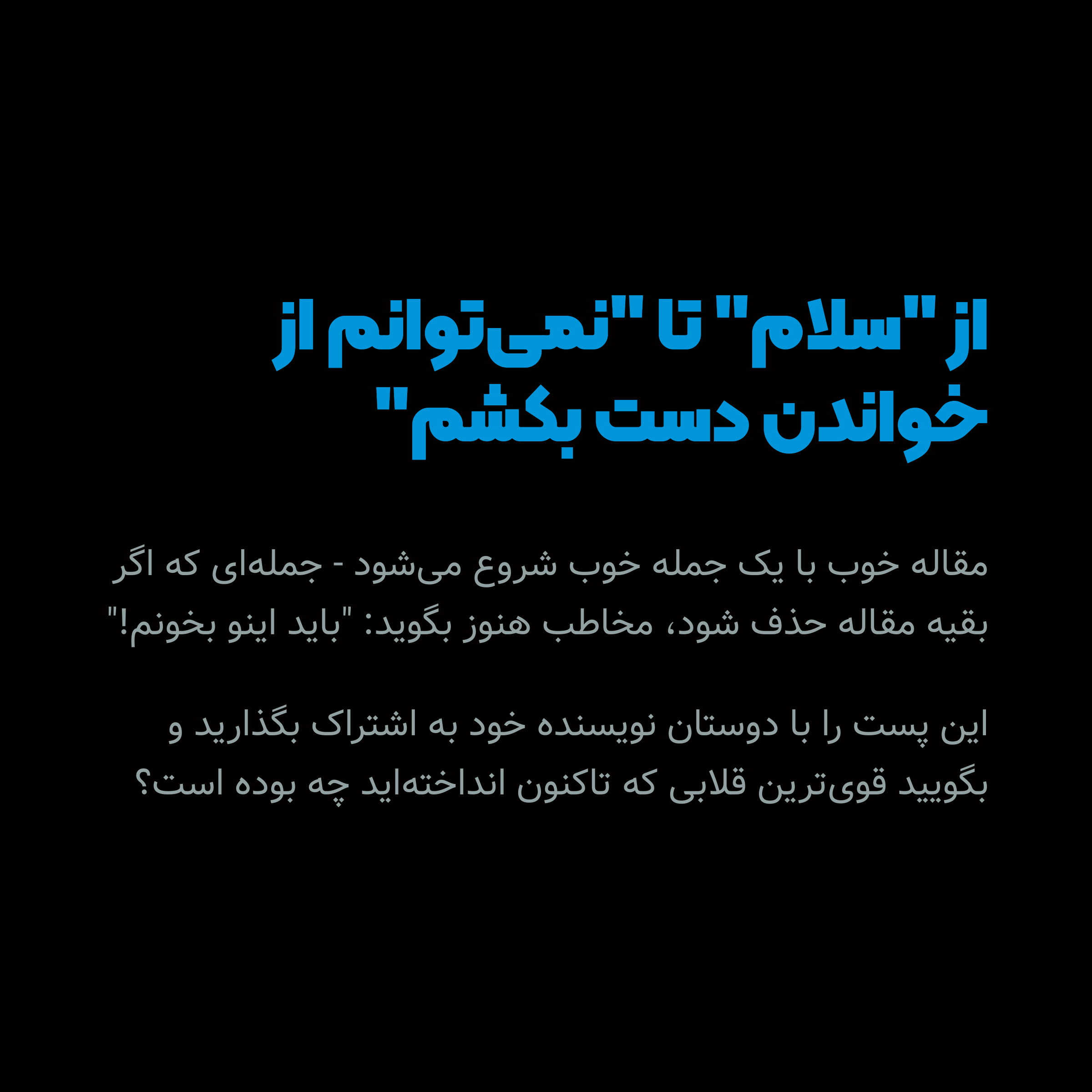 شروع مقاله باید با مخاطب باشه، نه نویسنده.