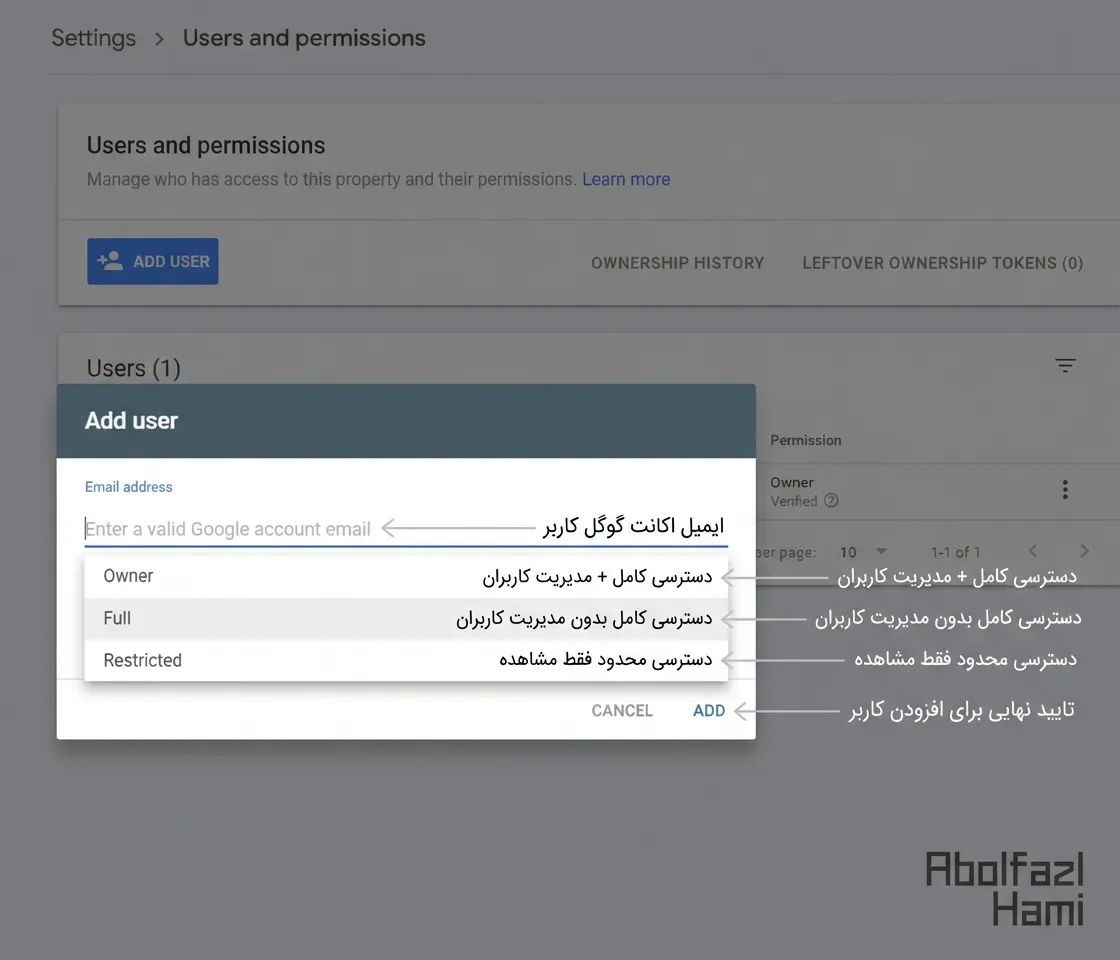 ثابت کنید رئیس هستید: باید به گوگل ثابت کنید که صاحب سایتی هستید که میخواهید آمارش را ببینید.