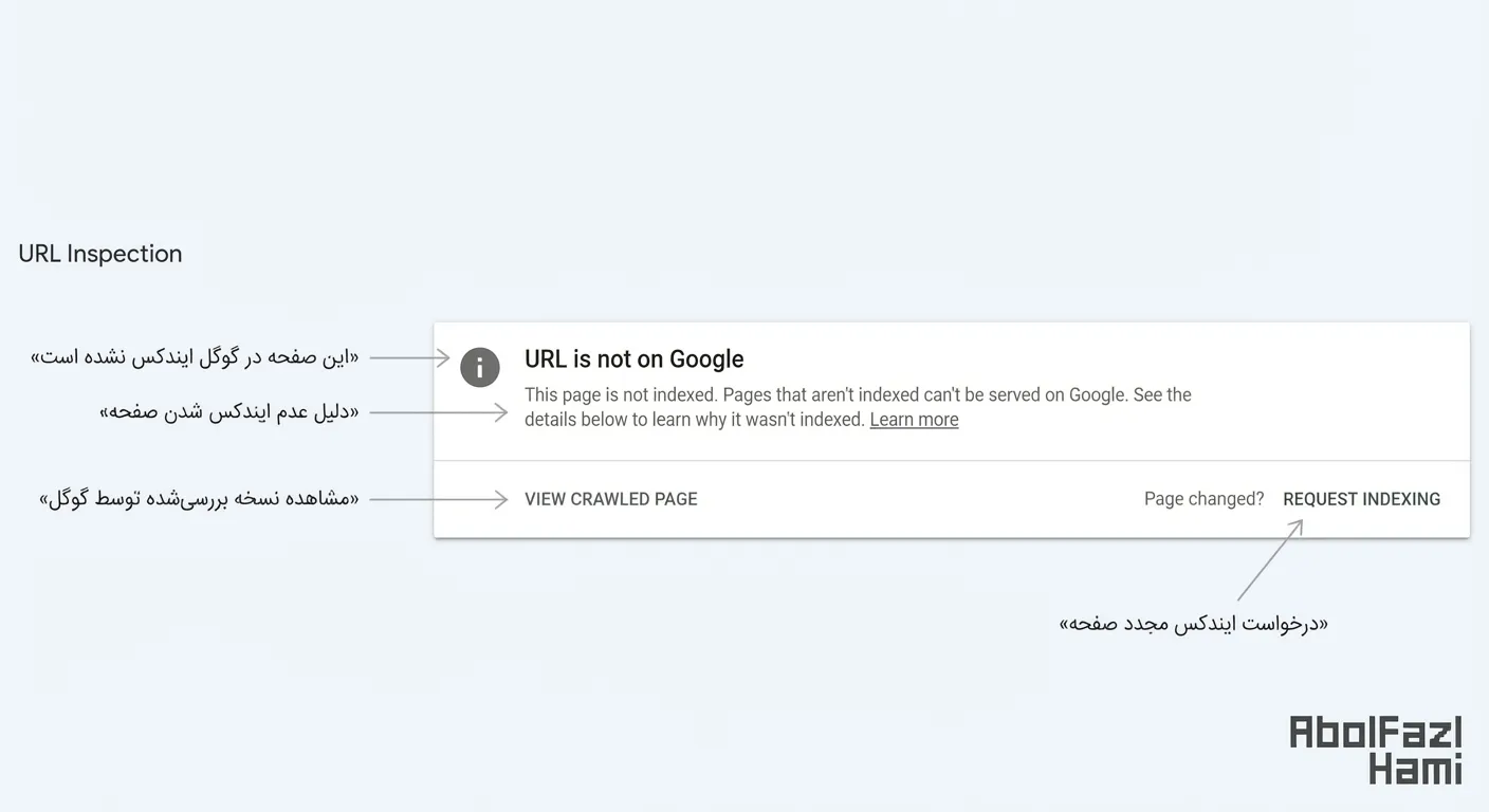 اما یک نکته مهم را فراموش نکنید: این کار صرفاً یک درخواست برای بررسی سریعتر است و هیچ تضمینی وجود ندارد که گوگل حتماً صفحه را ایندکس کند. اگر محتوای صفحه کیفیت لازم را نداشته باشد یا خطای فنی داشته باشد، حتی با درخواست دستی هم ایندکس نخواهد شد.
