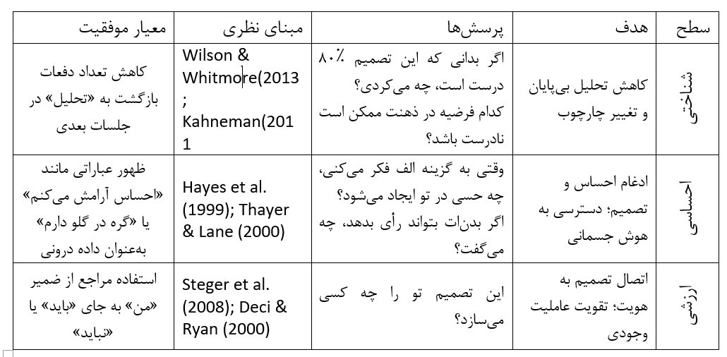 3. پرداختن به سطح ارزشی (در لحظهای که تضاد کاهش یافت: این انتخاب چه وعدهای به خودت میدهد؟)