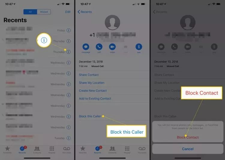 برای بلاک کردن شماره در آیفون ، میتوانید شمارهها را از بخش Recents تماسها، درون FaceTime یا درون Messages مسدود نمایید. بلاک کردن شماره در آیفون به یکی از این روشها انجام می شود. در هر سه این روشها: