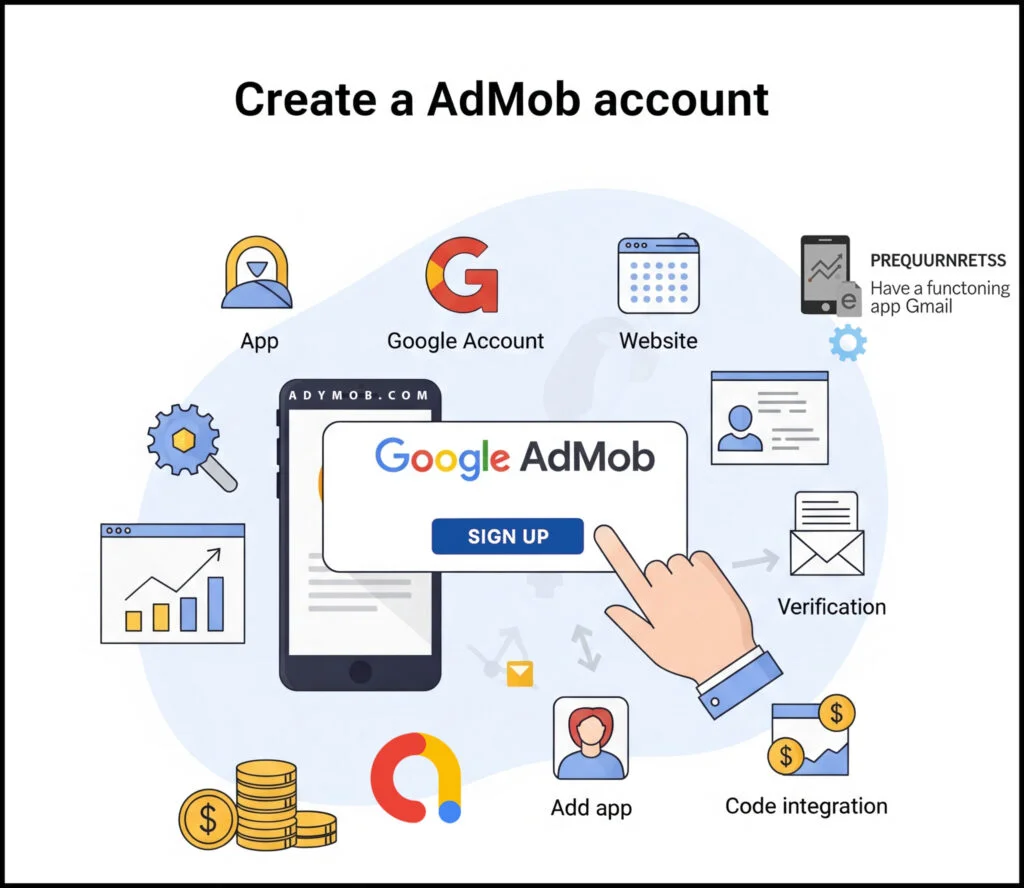 پیشنیازهای ضروری: به یاد داشته باشید که برای ساخت اکانت AdMob، به یک حساب کاربری فعال گوگل (Gmail) و یک اپلیکیشن اندروید یا iOS نیاز دارید. این اپلیکیشن باید در Google Play Store یا App Store منتشر شده باشد تا بتوانید تبلیغات را در آن نمایش دهید.