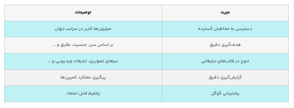 برای اینکه بهتر با مزایای AdMob آشنا بشید، به جدول زیر یه نگاهی بندازید.