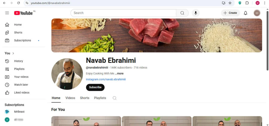 کانال یوتیوب نواب ابراهیمی یکی از برجستهترین کانالهای فارسی در حوزه آموزش آشپزی است که با بیش از 30 هزار مشترک، به منبعی معتبر برای علاقهمندان به آشپزی تبدیل شده است. نواب ابراهیمی، با عشقی که از کودکی و در کنار مادرش به آشپزی پیدا کرد، ویدیوهای آموزشی متنوعی شامل انواع غذاهای ایرانی، فرنگی، گیاهی، دسرها، صبحانهها و کبابها را ارائه میدهد.