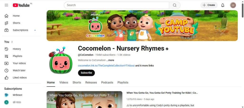 کانال یوتیوب Cocomelon تحت مدیریت Moonbug Entertainment (زیرمجموعه Candle Media)، با بیش از ۱۸۵ میلیون مشترک و ۱۹۲ میلیارد بازدید تا ژوئن ۲۰۲۵، یکی از موفقترین کانالهای کودکان در جهان است. کانال که در سال 2006 با نام « checkgate» توسط جی جئون و همسرش تاسیس شد، در سال 2018 به Cocomelon تغییر نام داد و بر تولید ویدیوهای انیمیشن سهبعدی از ترانههای سنتی کودکان و آهنگهای اصلی تمرکز کرد.