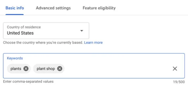 در اینجا میخواهیم روی دو مورد کلیدی از بخش اطلاعات پایه تمرکز کنیم: کشور محل سکونت و کلمات کلیدی کانال.