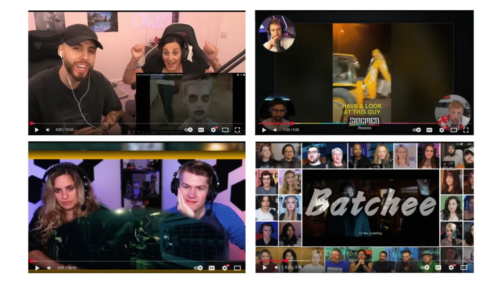 به عنوان مثال Fine Brothers Entertainment این کانال بهطور منظم واکنشهای جالب به ویدیوهای طنز و کلیپهای وایرال منتشر میکند. آنها بهویژه در قالبهای React بهطور مستقیم به محتوای وایرالشده در شبکههای اجتماعی واکنش نشان میدهند و مخاطبان زیادی را جذب کردهاند.