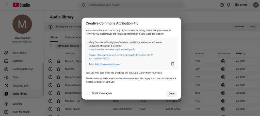 تقریباً همه ترکها و افکتها بدون اجبار به Attribution هستن، یعنی لازم نیست اسم آهنگساز و لینک سایت رو حتماً تو توضیحات بنویسی