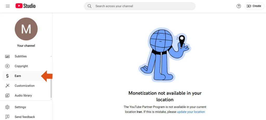 در منوی سمت چپ، روی گزینه Monetization (کسب درآمد) کلیک کنید.