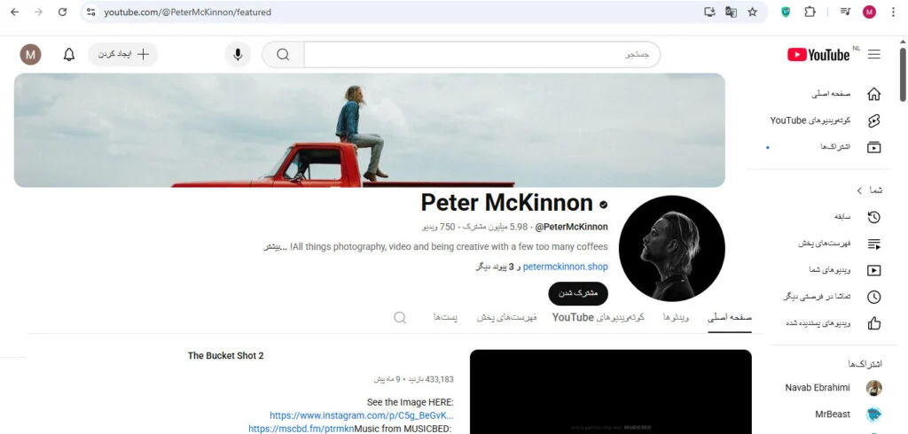 کانال Peter McKinnon نمونهای موفق از تبدیل مهارتهای عکاسی و فیلمبرداری به محتوای پرطرفدار است؛ او با اشتراکگذاری تجربیات شخصی و ارائه راهنماییهای کاربردی، جامعهای عظیم از دنبالکنندگان را جذب کرده است.