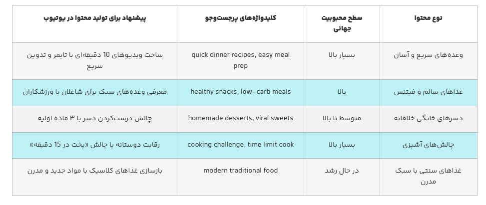 اگر میخواهید کانال یوتیوب آشپزی شما همیشه در مسیر رشد بماند، باید ترندها را بشناسید و محتوای خود را بر اساس علاقه واقعی مخاطبان بسازید.